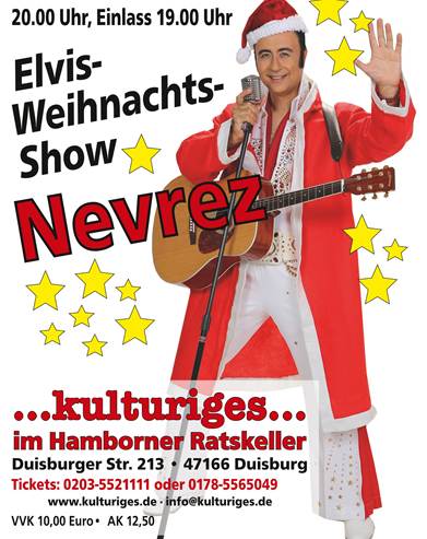 Nevrez rockt den Keller mit Elvis-Songs, Weihnachtsliedern und jeder Menge Stimmung im weihnachtlich geschmückten …kulturiges… im DU-Hamborner Ratskeller Duisburger Straße 213, 47166 Duisburg-Hamborn